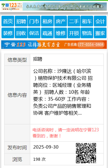 公司名称:沙隆达(哈尔滨)植物保护技术有限公司 招聘岗位:区域经理(业务精英) 招聘人数:10名 年龄要求:35-60岁 工作内容: 负责公司产品的销售管理和协调 客户维护等相关 【电话咨询时,请一定说明在望奎信息网看到的,谢谢!】 |