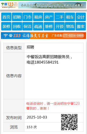 中餐饭店高薪招聘服务员,电话18045584191