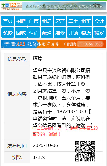 望奎县宇兴粮贸有限公司招聘烘干塔锅炉师傅,两班倒,活不累,按天计算工资,到月就结算工资,不压工资,烘粮期能干五六个月,要求六十岁以下,身体健康,踏实肯干,18724371333