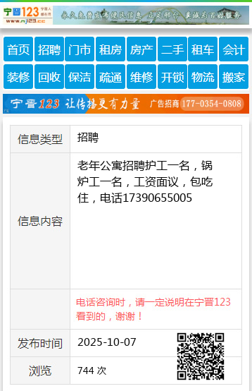 老年公寓招聘护工一名,锅炉工一名,工资面议,包吃住,电话17390655005