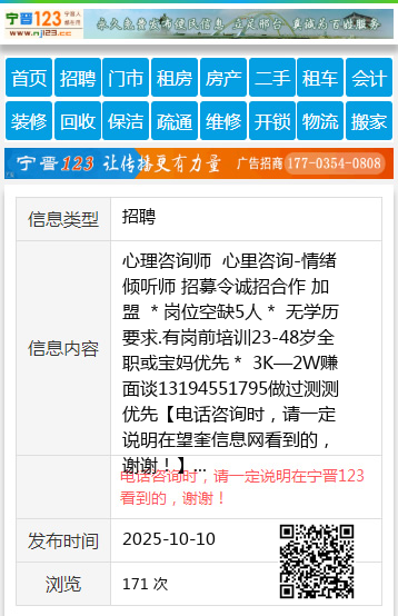| 防骗提醒: | 望奎信息网(www.wangkui.cc)提醒您:手工活、网络兼职、刷单,都是骗子!凡以各种名义收取费用的都是骗子!找工作是往兜里挣钱,让你往外掏钱的都是骗子!异地招聘请提高警惕,谨防诈骗! |