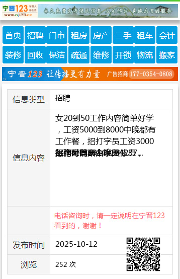 招聘微信19145154237 【电话咨询时,请一定说明在望奎信息网看到的,谢谢!】 |