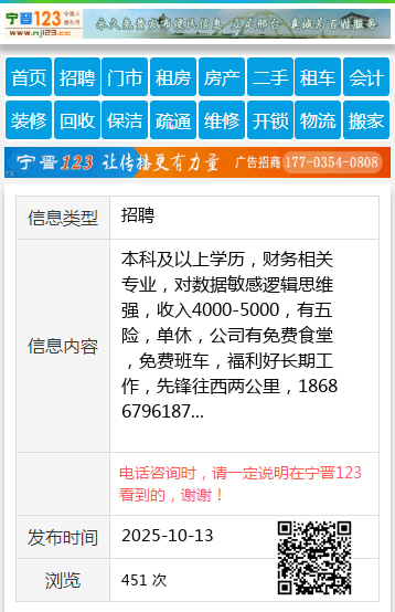 本科及以上学历,财务相关专业,对数据敏感逻辑思维强,收入4000-5000,有五险,单休,公司有免费食堂,免费班车,福利好长期工作,先锋往西两公里,18686796187 【电话咨询时,请一定说明在望奎信息网看到的,谢谢!】 |