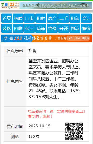 | 防骗提醒: | 望奎信息网(www.wangkui.cc)提醒您:手工活、网络兼职、刷单,都是骗子!凡以各种名义收取费用的都是骗子!找工作是往兜里挣钱,让你往外掏钱的都是骗子!异地招聘请提高警惕,谨防诈骗! |