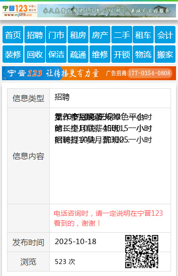 | 防骗提醒: | 望奎信息网(www.wangkui.cc)提醒您:手工活、网络兼职、刷单,都是骗子!凡以各种名义收取费用的都是骗子!找工作是往兜里挣钱,让你往外掏钱的都是骗子!异地招聘请提高警惕,谨防诈骗! |