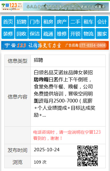 工资每月2500-7000(底薪+个人业绩提成+目标达成奖励+ 【电话咨询时,请一定说明在望奎信息网看到的,谢谢!】 |