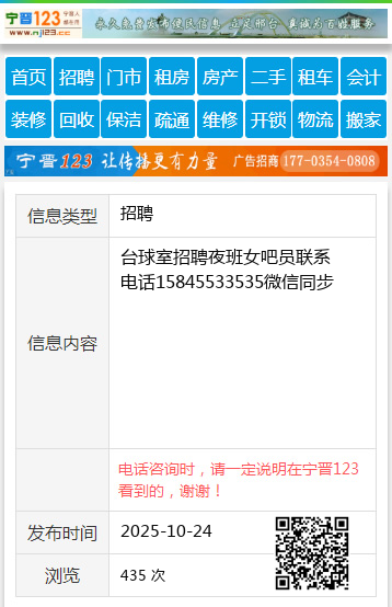 台球室招聘夜班女吧员联系电话15845533535微信同步