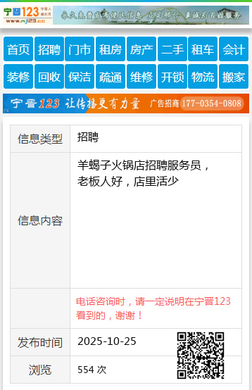 羊蝎子火锅店招聘服务员,老板人好,店里活少