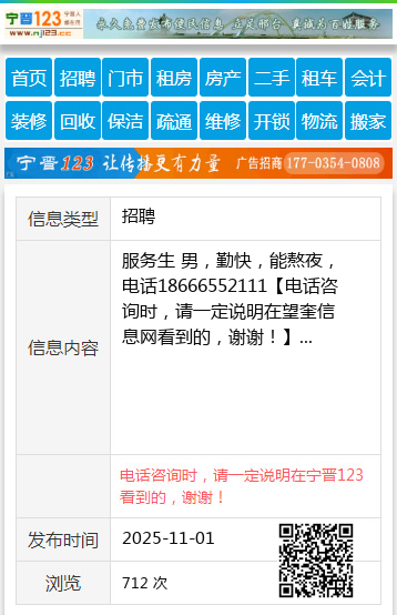 服务生 男,勤快,能熬夜,电话18666552111