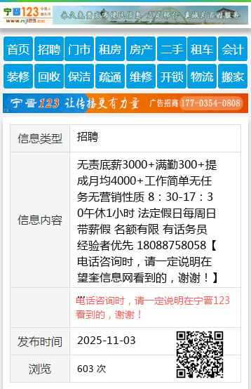 | 防骗提醒: | 望奎信息网(www.wangkui.cc)提醒您:手工活、网络兼职、刷单,都是骗子!凡以各种名义收取费用的都是骗子!找工作是往兜里挣钱,让你往外掏钱的都是骗子!异地招聘请提高警惕,谨防诈骗! |