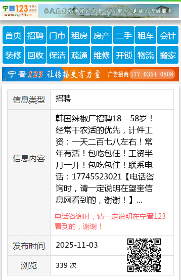 | 防骗提醒: | 望奎信息网(www.wangkui.cc)提醒您:手工活、网络兼职、刷单,都是骗子!凡以各种名义收取费用的都是骗子!找工作是往兜里挣钱,让你往外掏钱的都是骗子!异地招聘请提高警惕,谨防诈骗! |