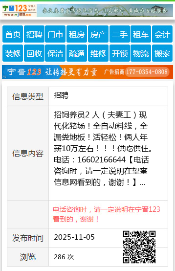 | 防骗提醒: | 望奎信息网(www.wangkui.cc)提醒您:手工活、网络兼职、刷单,都是骗子!凡以各种名义收取费用的都是骗子!找工作是往兜里挣钱,让你往外掏钱的都是骗子!异地招聘请提高警惕,谨防诈骗! |