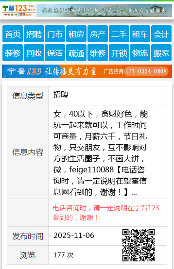 女,40以下,贪财好色,能玩一起来就可以,工作时间可商量,月薪六千,节日礼物,只交朋友,互不影响对方的生活圈子,不画大饼,微,feige110088 【电话咨询时,请一定说明在望奎信息网看到的,谢谢!】 |