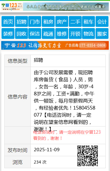 | 防骗提醒: | 望奎信息网(www.wangkui.cc)提醒您:手工活、网络兼职、刷单,都是骗子!凡以各种名义收取费用的都是骗子!找工作是往兜里挣钱,让你往外掏钱的都是骗子!异地招聘请提高警惕,谨防诈骗! |