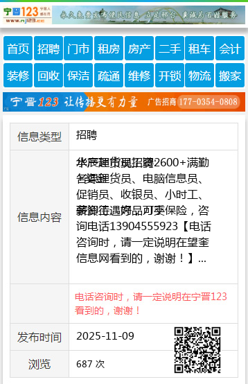 薪资待遇好,可交保险,咨询电话13904555923 【电话咨询时,请一定说明在望奎信息网看到的,谢谢!】 |