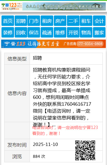 招聘教育机构兼职课程顾问,无任何学历能力要求,介绍初高中学员到校区报名学习就有提成,最高一单提成600,想利用闲暇时间赚点外快的联系我17604616717微同 【电话咨询时,请一定说明在望奎信息网看到的,谢谢!】 |