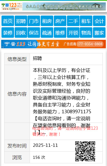 本科及以上学历,有会计证,三年以上会计核算工作,熟悉财税制度、财务专业知识及实际管理经验,良好的职业道德和沟通协调能力,具备自主学习能力,企业财务服务能力,13089971175 【电话咨询时,请一定说明在望奎信息网看到的,谢谢!】 |
