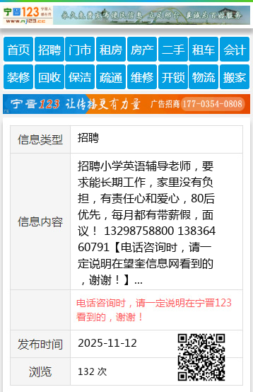 招聘小学英语辅导老师,要求能长期工作,家里没有负担,有责任心和爱心,80后优先,每月都有带薪假,面议! 13298758800 13836460791 【电话咨询时,请一定说明在望奎信息网看到的,谢谢!】 |