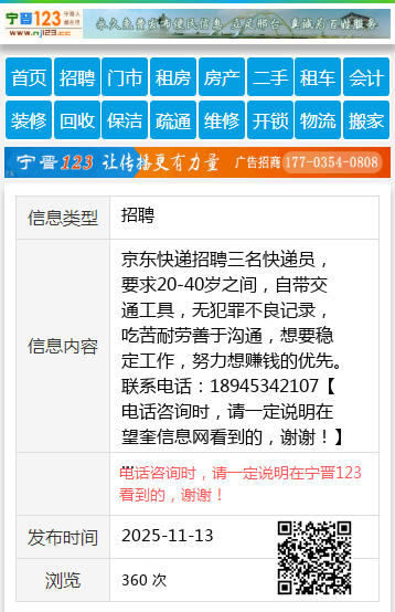 京东快递招聘三名快递员,要求20-40岁之间,自带交通工具,无犯罪不良记录,吃苦耐劳善于沟通,想要稳定工作,努力想赚钱的优先。联系电话:18945342107 【电话咨询时,请一定说明在望奎信息网看到的,谢谢!】 |