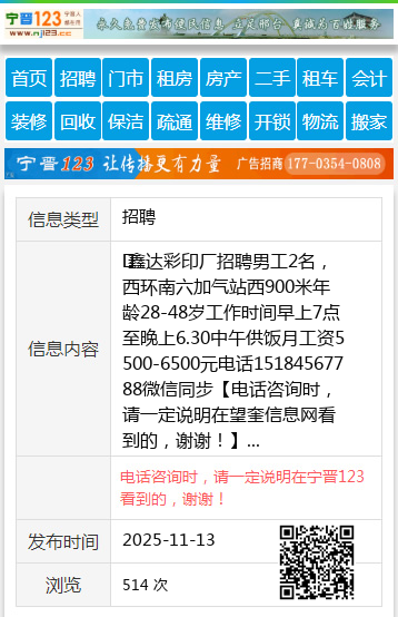 鑫达彩印厂招聘男工2名,西环南六加气站西900米年龄28-48岁工作时间早上7点至晚上6.30中午供饭月工资5500-6500元电话15184567788微信同步 【电话咨询时,请一定说明在望奎信息网看到的,谢谢!】 |