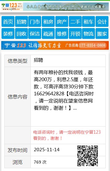 免责声明:本栏目信息由网友自行发布,望奎信息网不承担任何责任!提高警惕,谨防诈骗!做推广、做信息置顶!请加望奎信息网客服微信:wangku0455