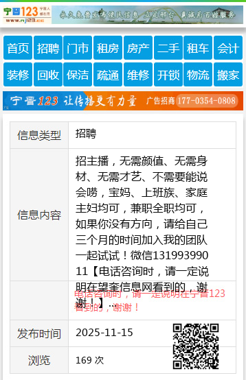 招主播,无需颜值、无需身材、无需才艺、不需要能说会唠,宝妈、上班族、家庭主妇均可,兼职全职均可,如果你没有方向,请给自己三个月的时间加入我的团队一起试试!微信13199399011 【电话咨询时,请一定说明在望奎信息网看到的,谢谢!】 |