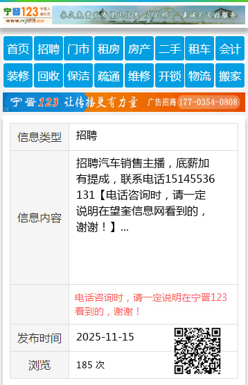 招聘汽车销售主播,底薪加有提成,联系电话15145536131