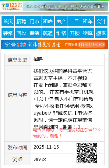 我们这边招的是抖音平台语音聊天室主播,不开视频 ,在麦上闲聊,兼职全职都可以的。 在家有手机带耳机就可以工作 新人小白有师傅教 全程不收取任何费用 微信xuyabei7 非诚勿扰 【电话咨询时,请一定说明在望奎信息网看到的,谢谢!】 |