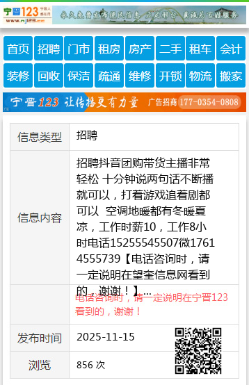 招聘抖音团购带货主播非常轻松 十分钟说两句话不断播就可以,打着游戏追着剧都可以 空调地暖都有冬暖夏凉,工作时薪10,工作8小时电话15255545507微17614555739 【电话咨询时,请一定说明在望奎信息网看到的,谢谢!】 |