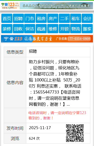 | 防骗提醒: | 望奎信息网(www.wangkui.cc)提醒您:手工活、网络兼职、刷单,都是骗子!凡以各种名义收取费用的都是骗子!找工作是往兜里挣钱,让你往外掏钱的都是骗子!异地招聘请提高警惕,谨防诈骗! |