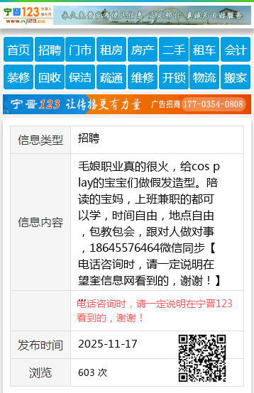 毛娘职业真的很火,给cos play的宝宝们做假发造型。陪读的宝妈,上班兼职的都可以学,时间自由,地点自由,包教包会,跟对人做对事,18645576464微信同步 【电话咨询时,请一定说明在望奎信息网看到的,谢谢!】 |