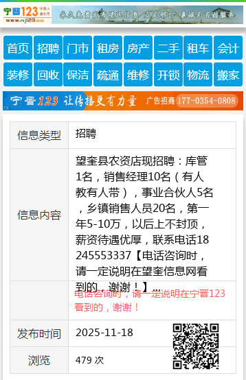 | 防骗提醒: | 望奎信息网(www.wangkui.cc)提醒您:手工活、网络兼职、刷单,都是骗子!凡以各种名义收取费用的都是骗子!找工作是往兜里挣钱,让你往外掏钱的都是骗子!异地招聘请提高警惕,谨防诈骗! |