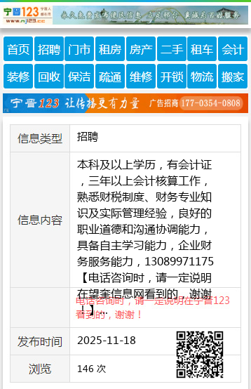 本科及以上学历,有会计证,三年以上会计核算工作,熟悉财税制度、财务专业知识及实际管理经验,良好的职业道德和沟通协调能力,具备自主学习能力,企业财务服务能力,13089971175 【电话咨询时,请一定说明在望奎信息网看到的,谢谢!】 |