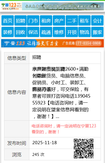 薪资待遇好,可交保险,有意者可拨打咨询电话13904555923 【电话咨询时,请一定说明在望奎信息网看到的,谢谢!】 |