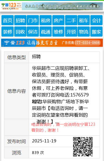 华辰超市二店现招聘装卸工、收银员、理货员、促销员、保洁员薪资待遇好,有带薪休假,可上养老保险,有意者可拨打咨询电话:15765798271