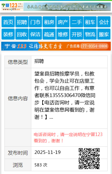 望奎县招聘按摩学员,包教包会,学会为止可在店里工作,也可以自由工作,有意者联系13555306470微信同步
