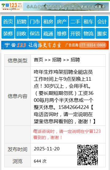 咚年生炸鸡架招聘全能店员工作时间上午9点至晚上11点!30岁以上,会用手机。(要长期短期勿扰)工资3600每月两个半天休息或一个整天休息。15842664224