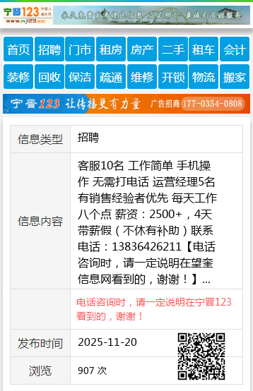 | 防骗提醒: | 望奎信息网(www.wangkui.cc)提醒您:手工活、网络兼职、刷单,都是骗子!凡以各种名义收取费用的都是骗子!找工作是往兜里挣钱,让你往外掏钱的都是骗子!异地招聘请提高警惕,谨防诈骗! |