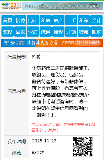 华辰超市二店现招聘装卸工、收银员、理货员、促销员、薪资待遇好,有带薪休假,可上养老保险,有意者可拨打咨询电话:15765798271 地址:华辰购物广场地下新华辰超市