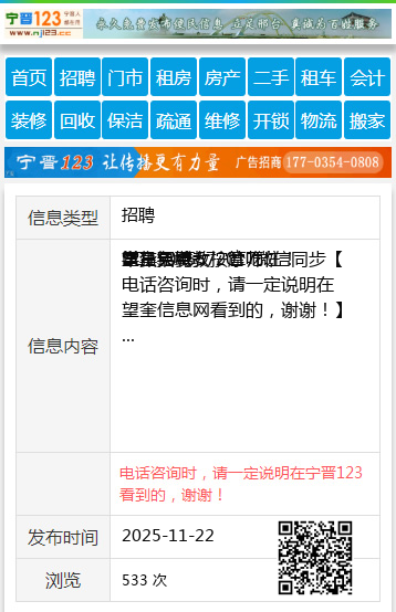 免责声明:本栏目信息由网友自行发布,望奎信息网不承担任何责任!提高警惕,谨防诈骗!做推广、做信息置顶!请加望奎信息网客服微信:wangku0455