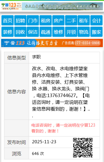 免责声明:本栏目信息由网友自行发布,望奎信息网不承担任何责任!提高警惕,谨防诈骗!做推广、做信息置顶!请加望奎信息网客服微信:wangku0455