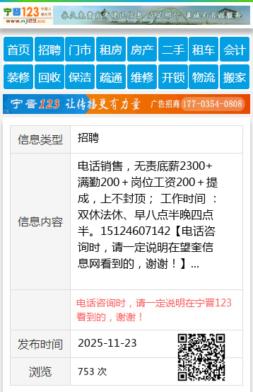 电话销售,无责底薪2300+满勤200+岗位工资200+提成,上不封顶; 工作时间 :双休法休、早八点半晚四点半。15124607142