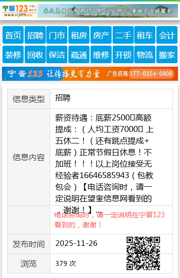 薪资待遇:底薪2500➕高额提成:(人均工资7000➕ 上五休二!(还有跳点提成+底薪)正常节假日休息!不加班!!!以上岗位接受无经验者16646585943(包教包会) 【电话咨询时,请一定说明在望奎信息网看到的,谢谢!】 |