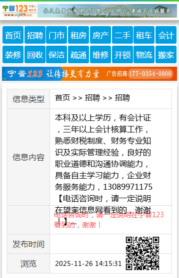 本科及以上学历,有会计证,三年以上会计核算工作,熟悉财税制度、财务专业知识及实际管理经验,良好的职业道德和沟通协调能力,具备自主学习能力,企业财务服务能力,13089971175 【电话咨询时,请一定说明在望奎信息网看到的,谢谢!】 |