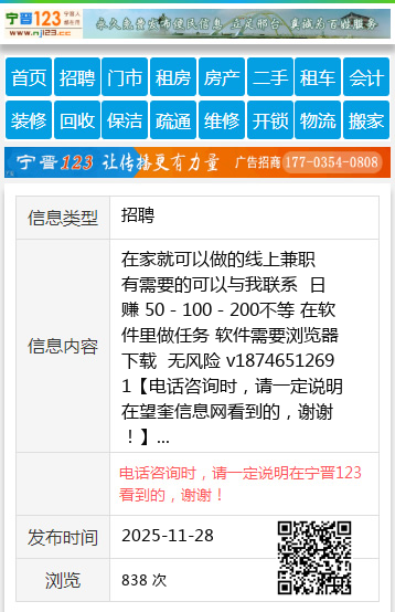 在家就可以做的线上兼职 有需要的可以与我联系 日赚 50-100-200不等 在软件里做任务 软件需要浏览器下载 无风险 v18746512691