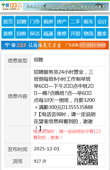 招聘服务员24小时营业,三班倒每班8小时工作制早班早6️⃣—下午2️⃣点中班2️⃣—晚?点晚班?点—早6️⃣点每10天一倒班,月薪3200+满勤300元☎13555358887 【电话咨询时,请一定说明在望奎信息网看到的,谢谢!】 |