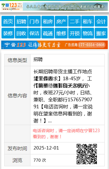 | 防骗提醒: | 望奎信息网(www.wangkui.cc)提醒您:手工活、网络兼职、刷单,都是骗子!凡以各种名义收取费用的都是骗子!找工作是往兜里挣钱,让你往外掏钱的都是骗子!异地招聘请提高警惕,谨防诈骗! |