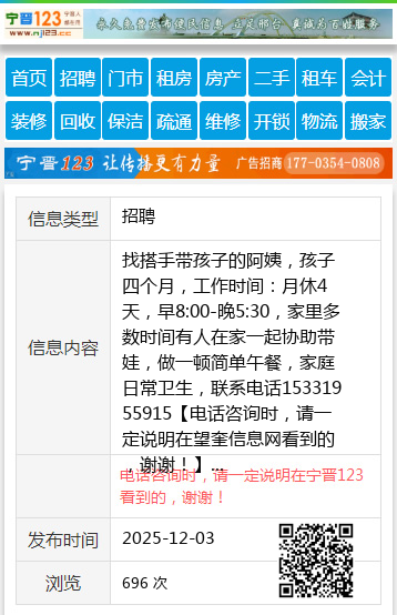 找搭手带孩子的阿姨,孩子四个月,工作时间:月休4天,早8:00-晚5:30,家里多数时间有人在家一起协助带娃,做一顿简单午餐,家庭日常卫生,联系电话15331955915 【电话咨询时,请一定说明在望奎信息网看到的,谢谢!】 |