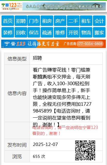 不拉人,不交押金,每天刷广告,收入100-300轻松到手!操作简单易上手,新手也能快速变现多劳多得无上限,全程无任何费用加17279845899 【电话咨询时,请一定说明在望奎信息网看到的,谢谢!】 |