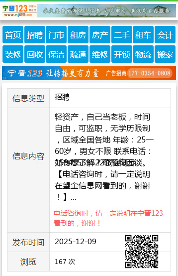 轻资产,自己当老板,时间自由,可监职,无学历限制,区域全国各地 年龄:25一60岁,男女不限 联系电话:15945559522微信同步